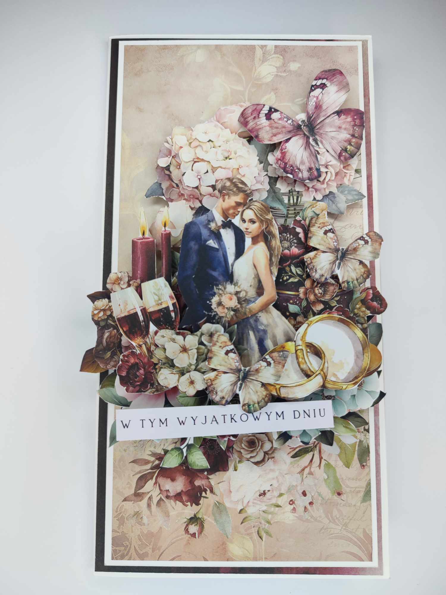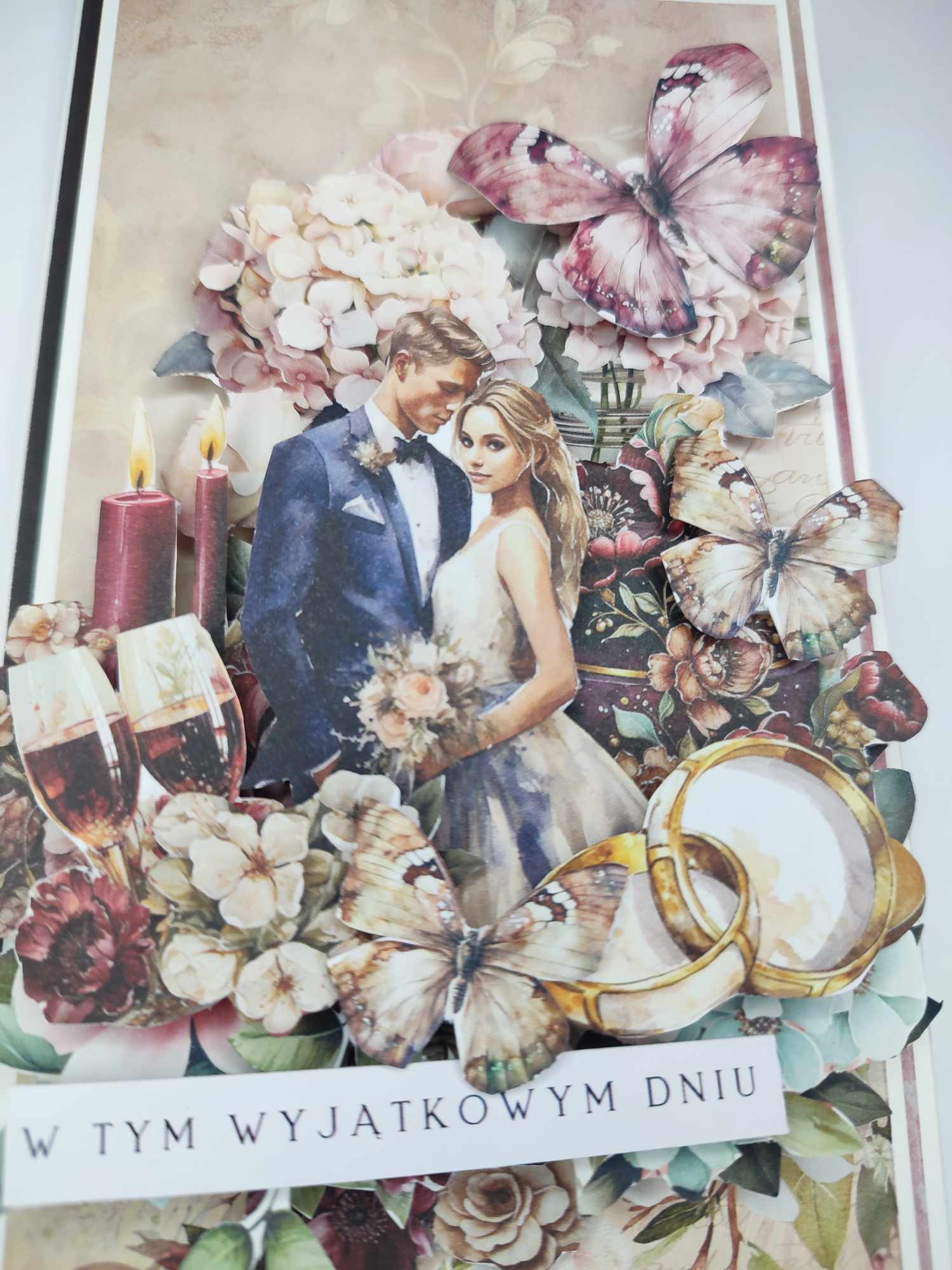 - Każdy element ozdobny na kartce jest wycinany ręcznie, co nadaje jej niepowtarzalny charakter. Starannie dobrane motywy, takie jak kwiaty, serca czy inne elementy tematyczne, tworzą spójną całość.