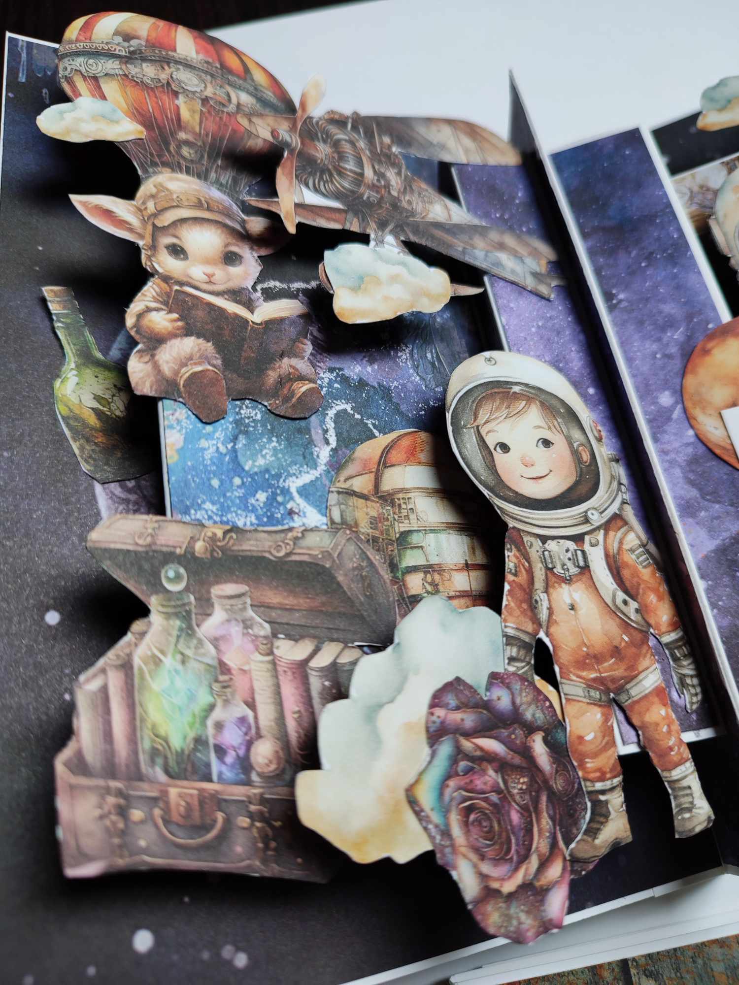 • Oparte na technice Scrapbookingu, nasze kartki zawierają zróżnicowane warstwy papieru i dodatków, które nadają im trójwymiarową strukturę. Tekstury są starannie dobrane, aby zwiększyć wrażenie autentyczności i głębi.