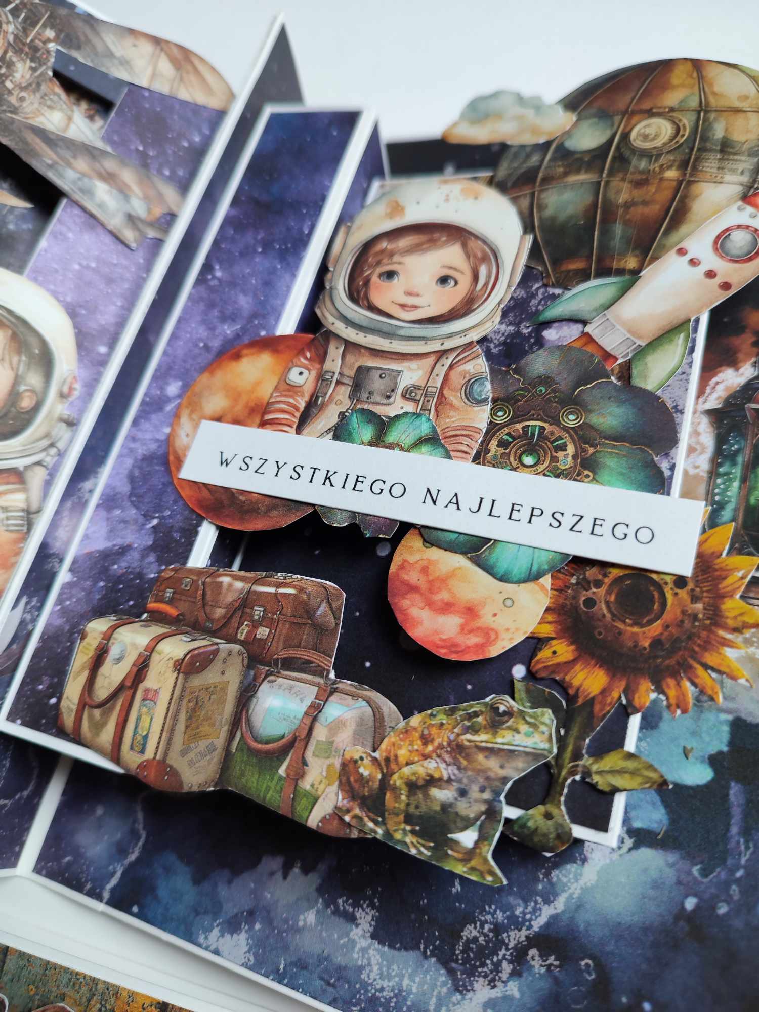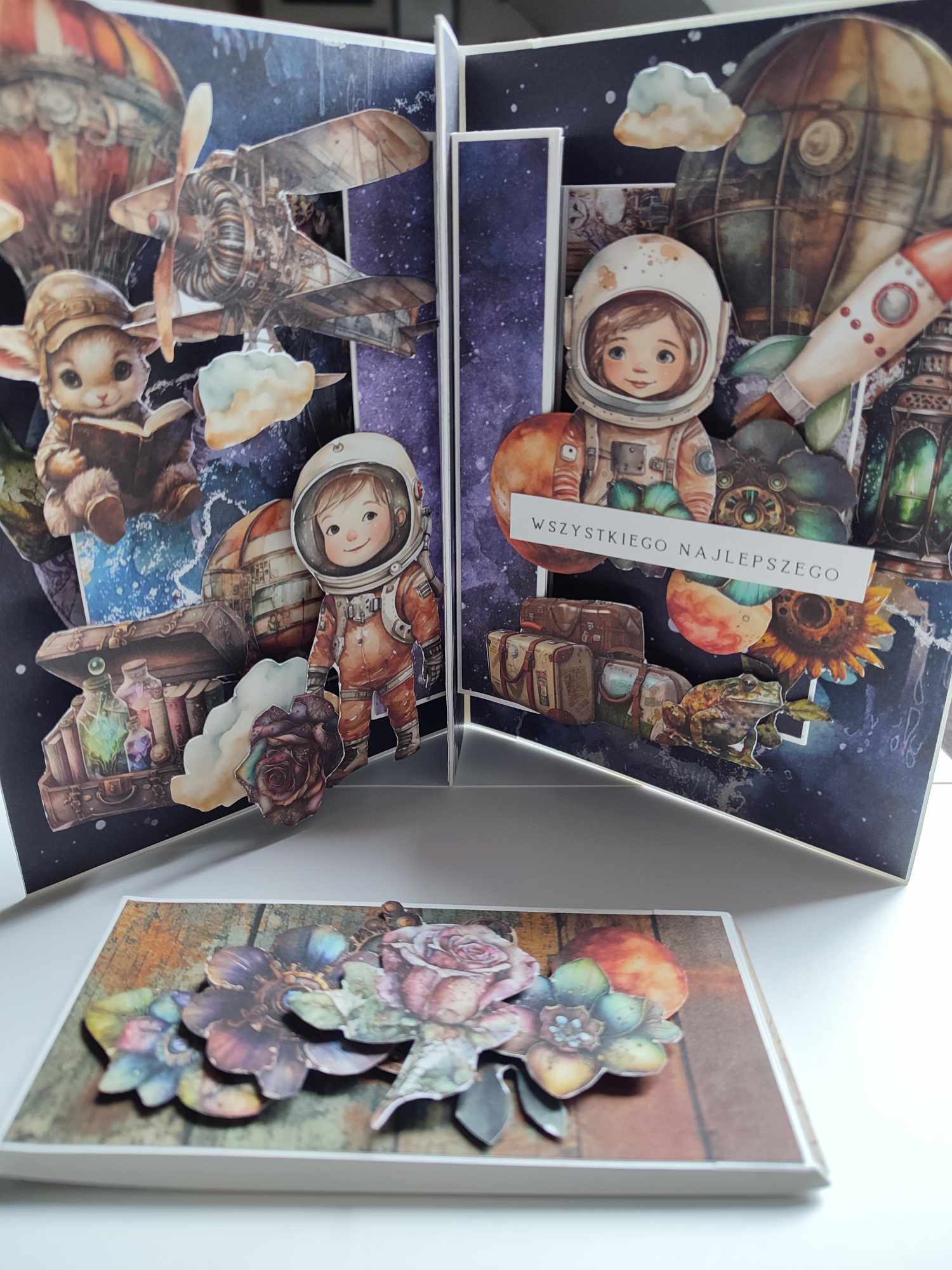 Odkryj wyjątkowe kartki okolicznościowe w wykonaniu techniki Scrapbookingu! Każda z nich to nie tylko życzenia, ale także unikatowe wyrażenie rękodzielniczej pasji, której celem jest dodanie magicznego akcentu do każdej uroczystości. Każda kartka składa się z precyzyjnie dobranych elementów, takich jak: