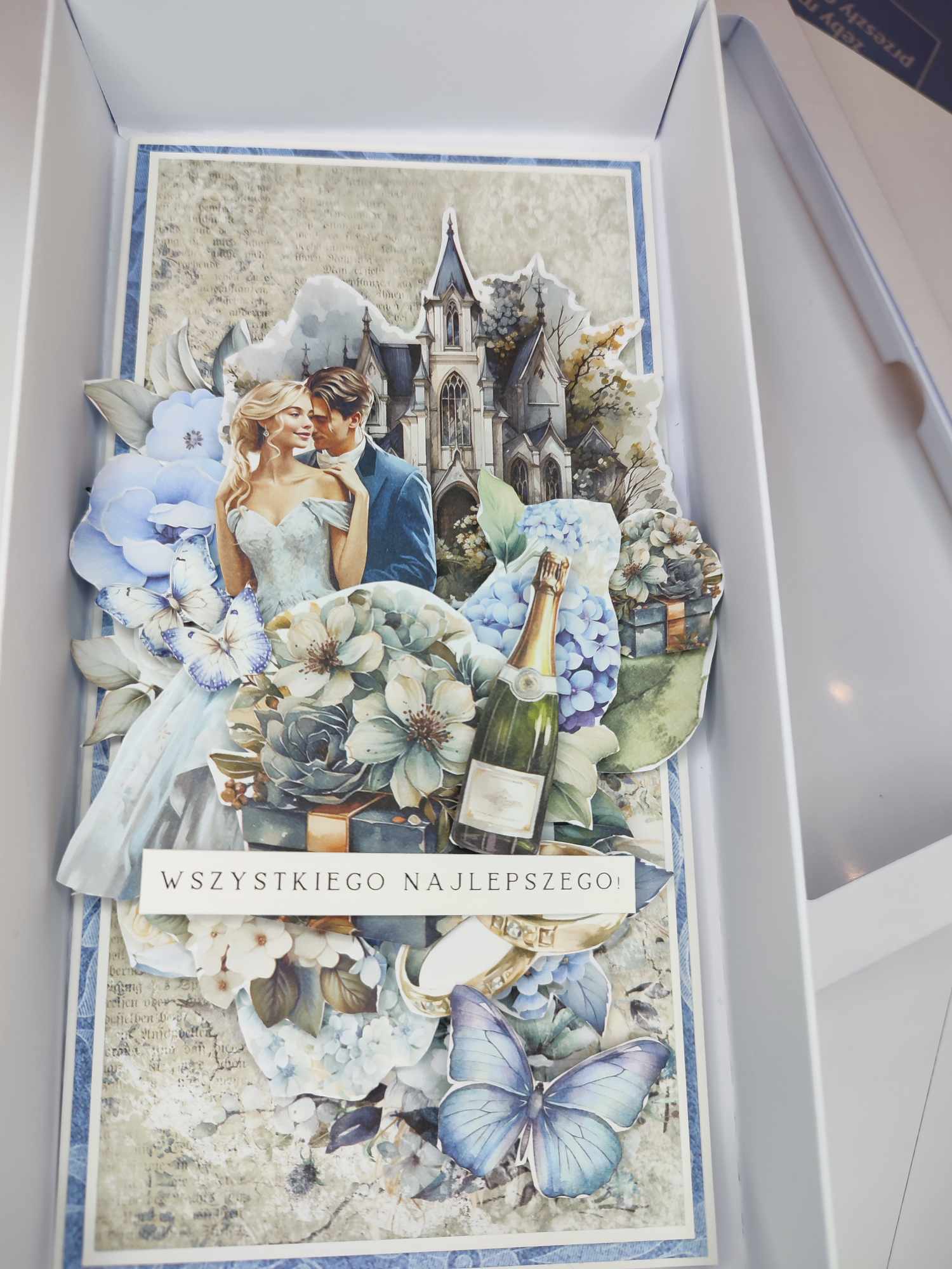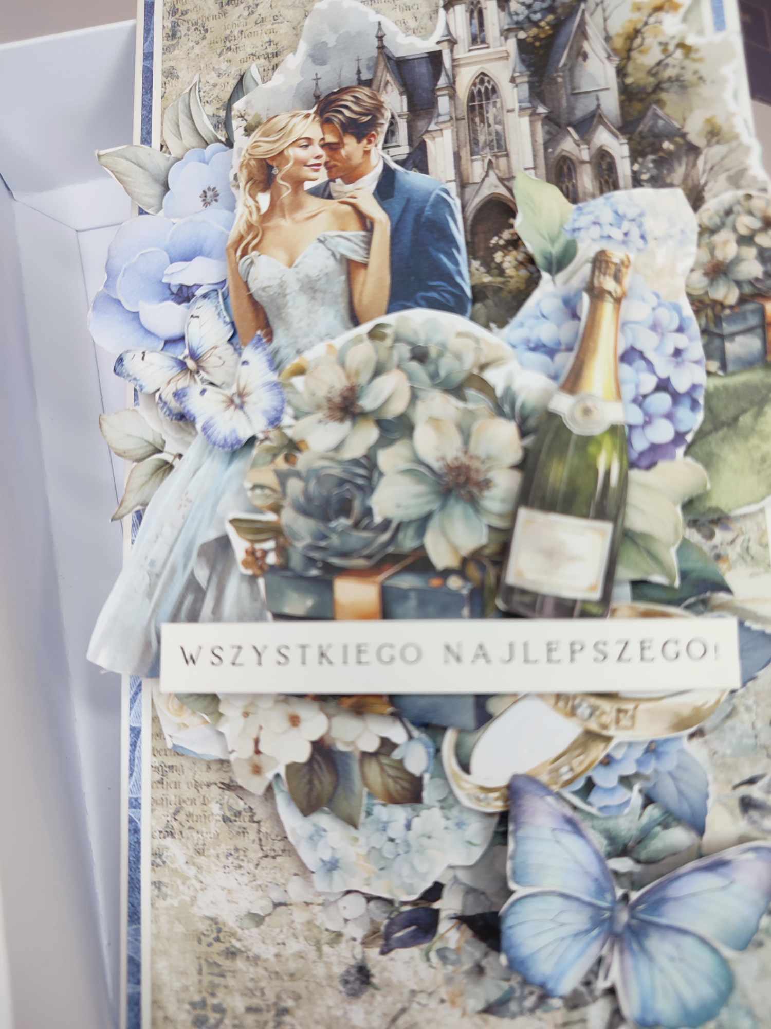 • Każdy element ozdobny na kartce jest wycinany ręcznie, co nadaje jej niepowtarzalny charakter. Starannie dobrane motywy, takie jak kwiaty, serca czy inne elementy tematyczne, tworzą spójną całość.